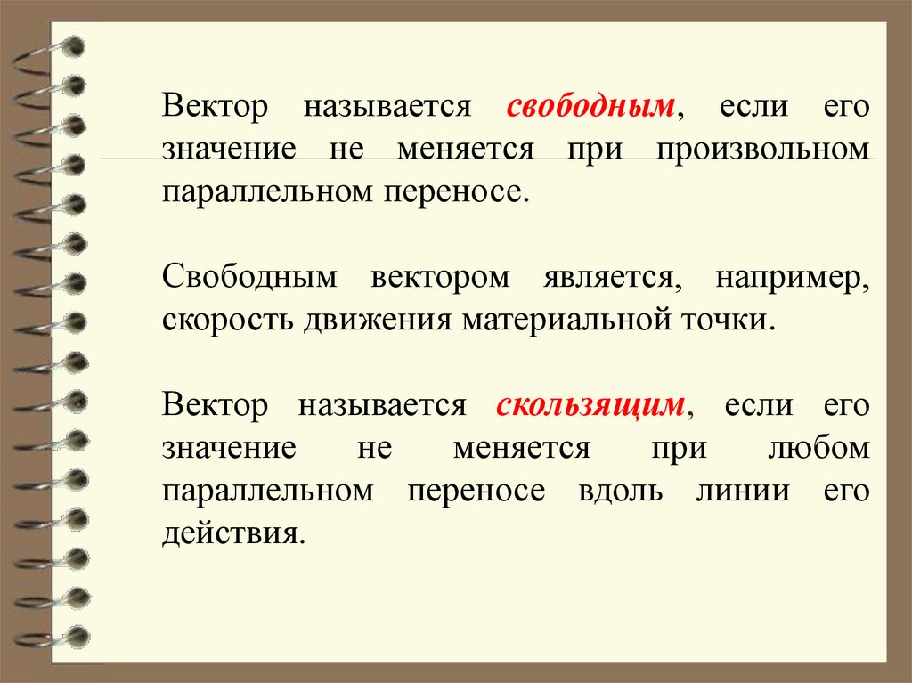 Вектор называется свободным, если егозначение не меняется при произвольном