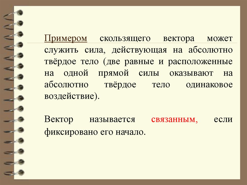 Примером скользящего вектора можетслужить сила, действующая на абсолютно