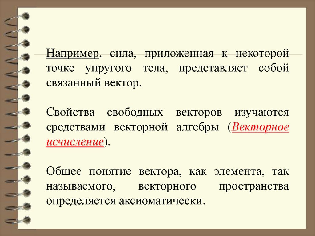 Например, сила, приложенная к некоторойточке упругого тела, представляет собой