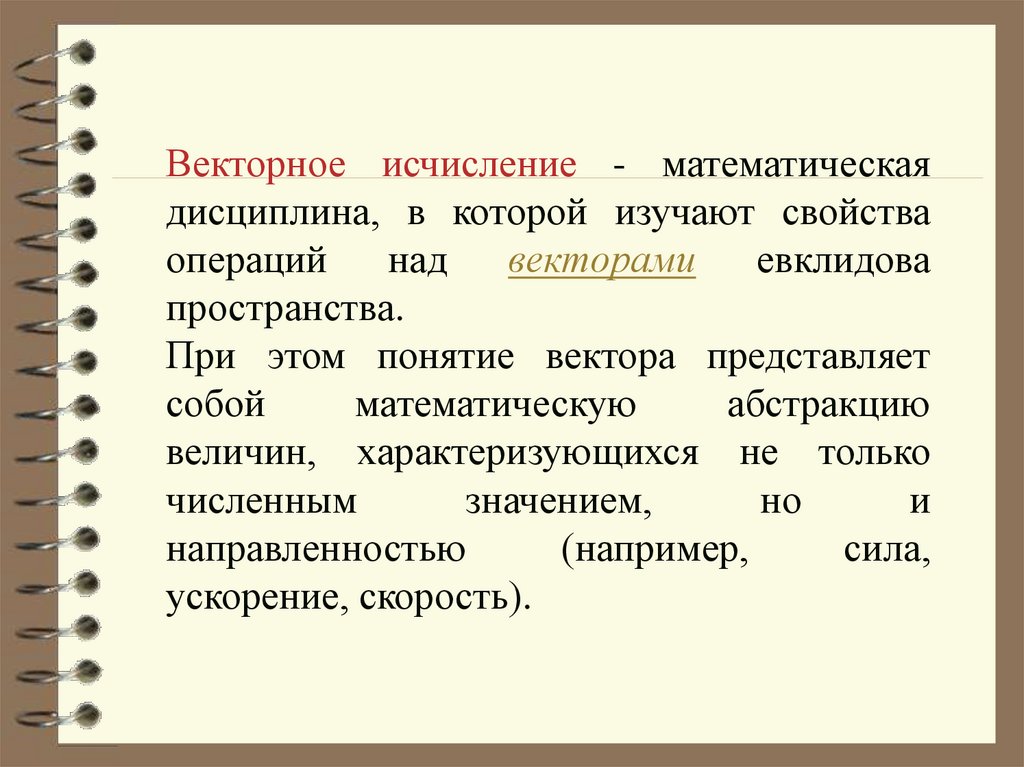 Векторное исчисление - математическаядисциплина, в которой изучают свойства