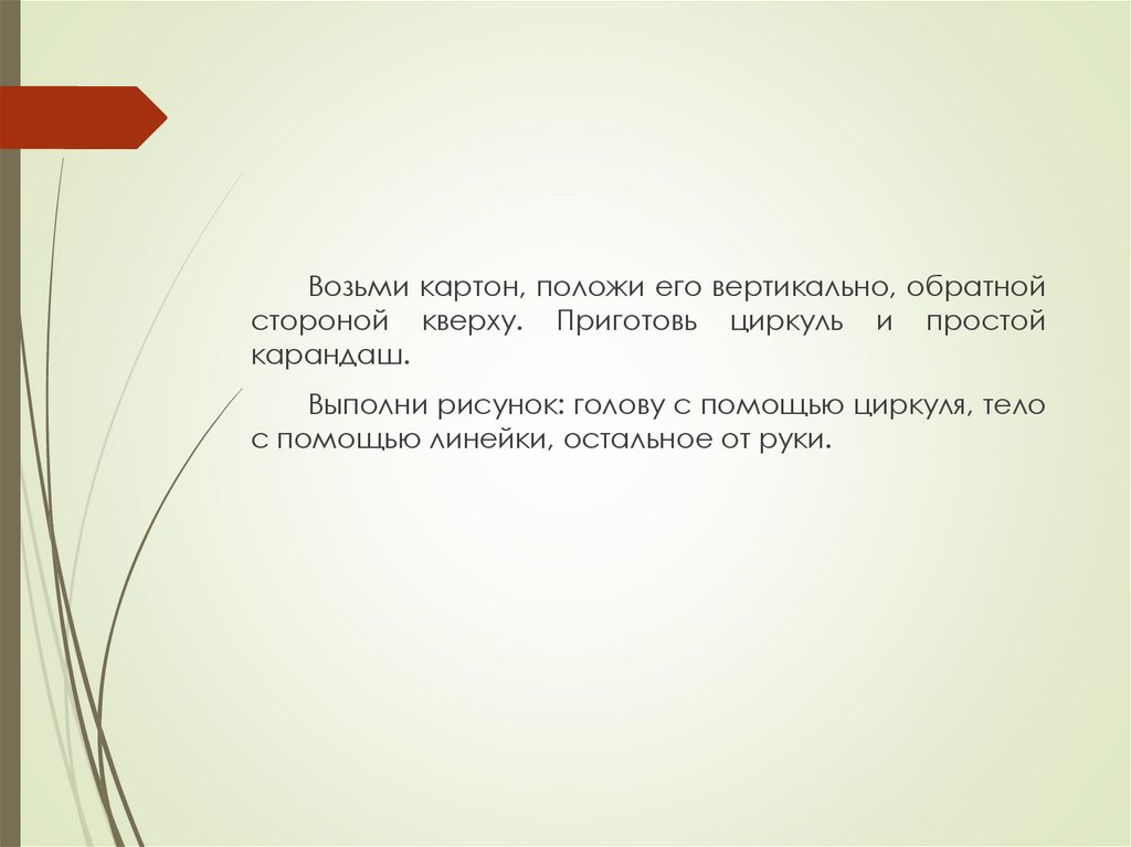 Возьми картон, положи его вертикально, обратнойстороной кверху. Приготовь циркуль и простой