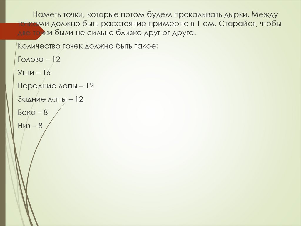 Наметь точки, которые потом будем прокалывать дырки. Междуточками должно быть расстояние примерно в 1 см. Старайся, чтобы