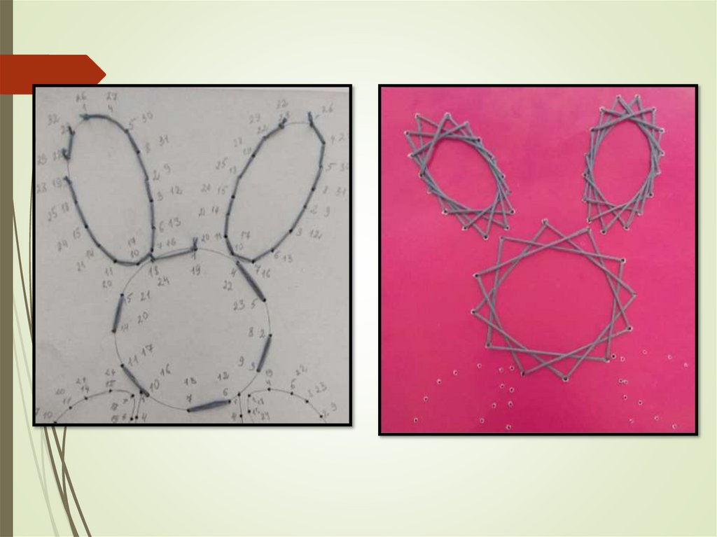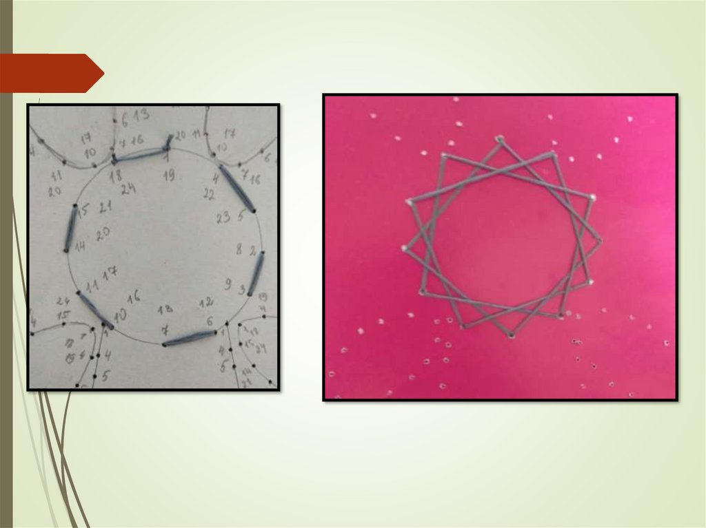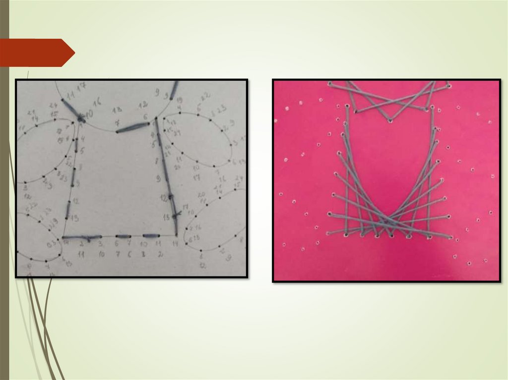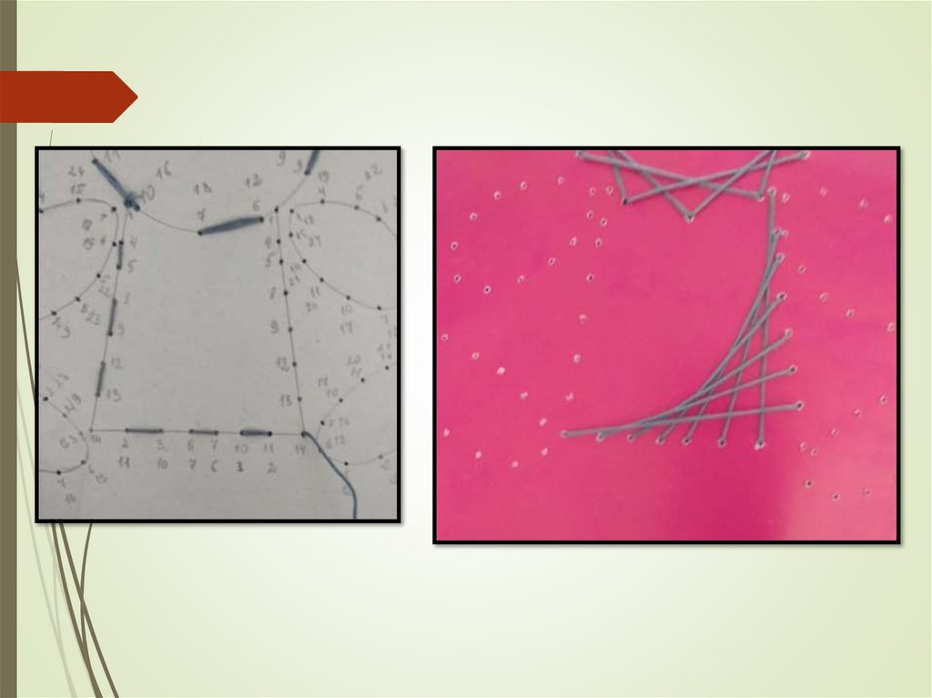 переплетения ниток. Они вбивали в дощечку гвозди и в