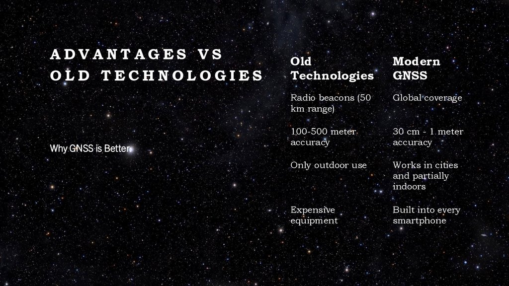 • Satellite dependency - Accuracy drops if satellites fail