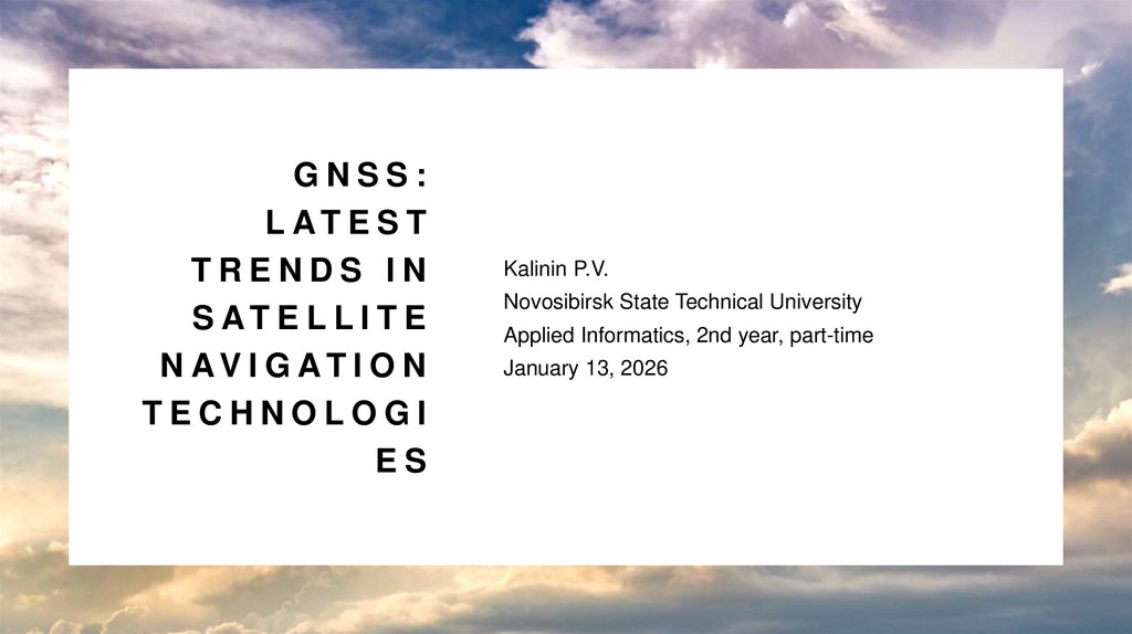 1. GNSS: Latest Trends in Satellite Navigation Technologies