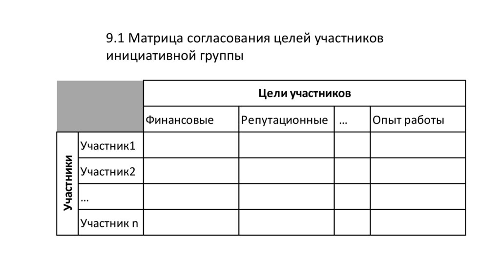 • Индивидуальные соглашения с членами проектной команды