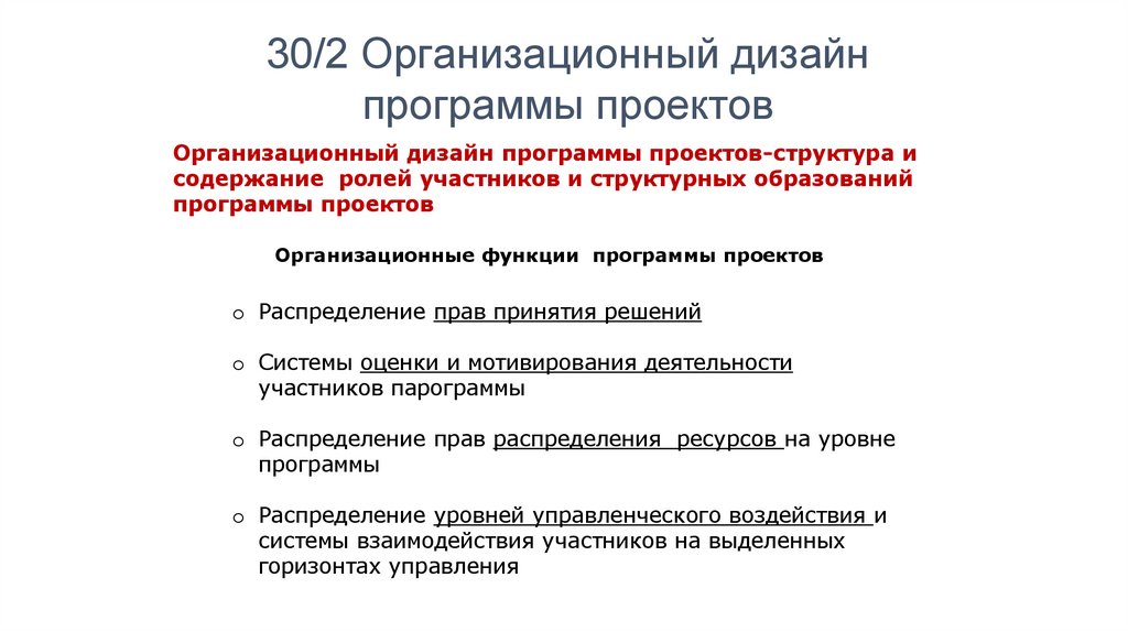 30/2 Организационный дизайнпрограммы проектов