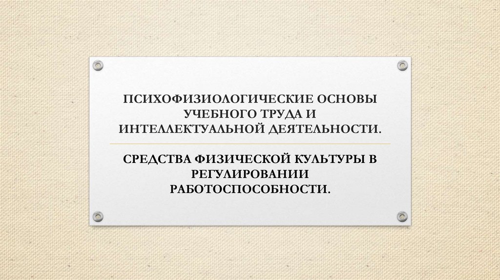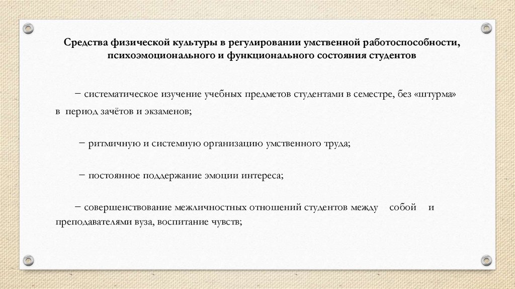 Средства физической культуры в регулировании умственной работоспособности,психоэмоционального и функционального состояния студентов