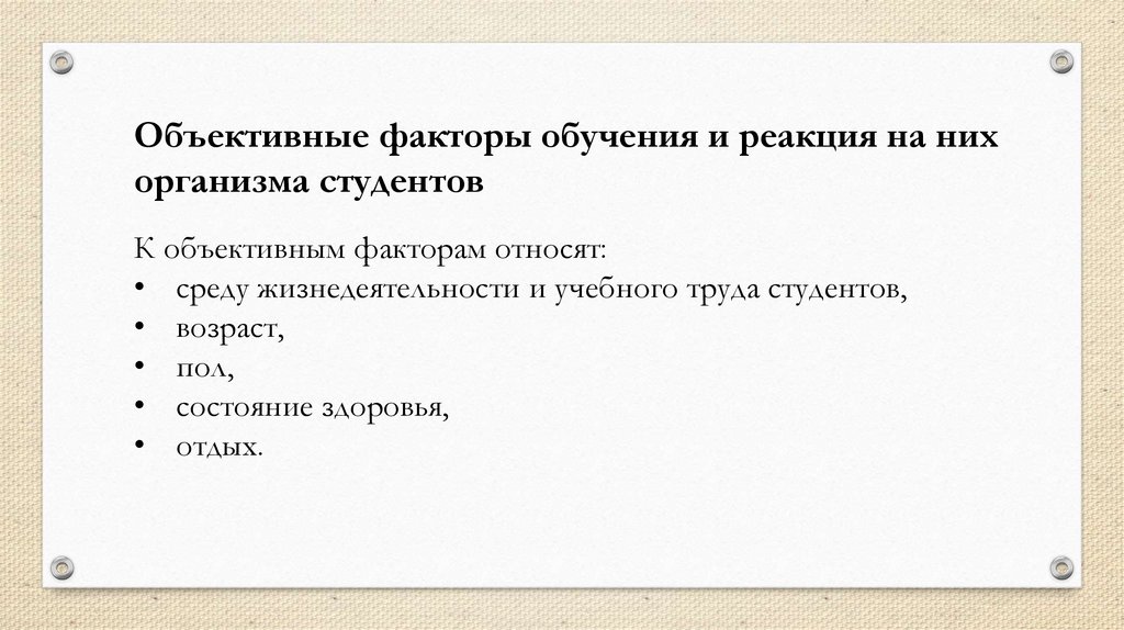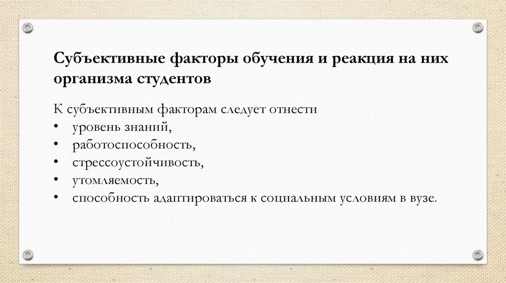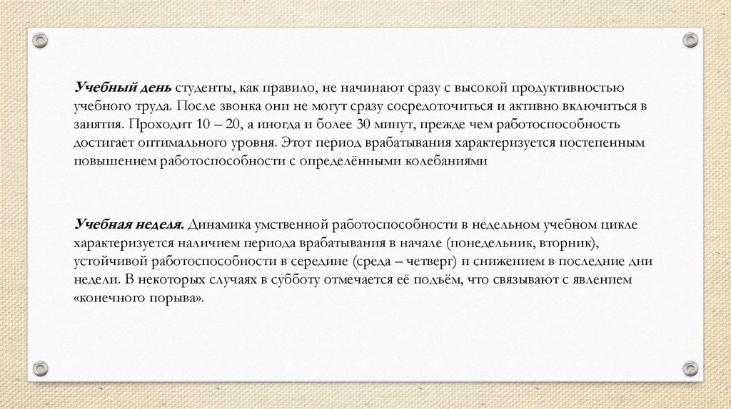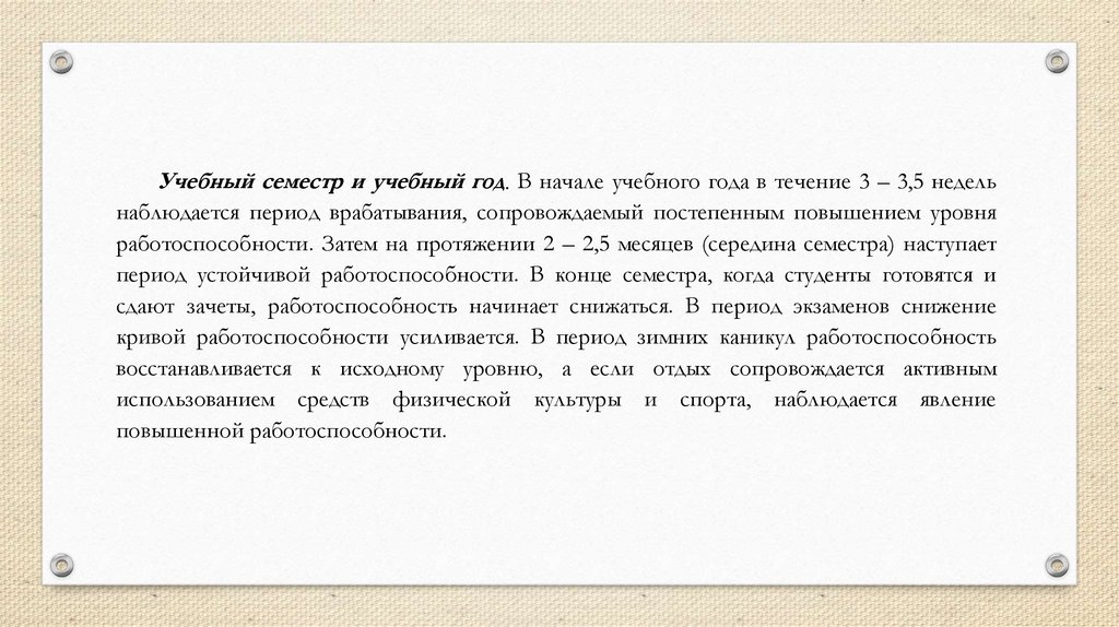 Учебный семестр и учебный год. В начале учебного года в течение 3 – 3,5 недельнаблюдается период врабатывания, сопровождаемый постепенным повышением уровня