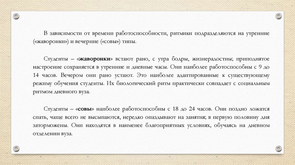 сдают зачеты, работоспособность начинает снижаться. В период экзаменов снижение