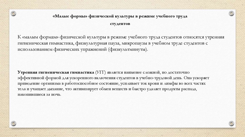 «Малые формы» физической культуры в режиме учебного трудастудентов