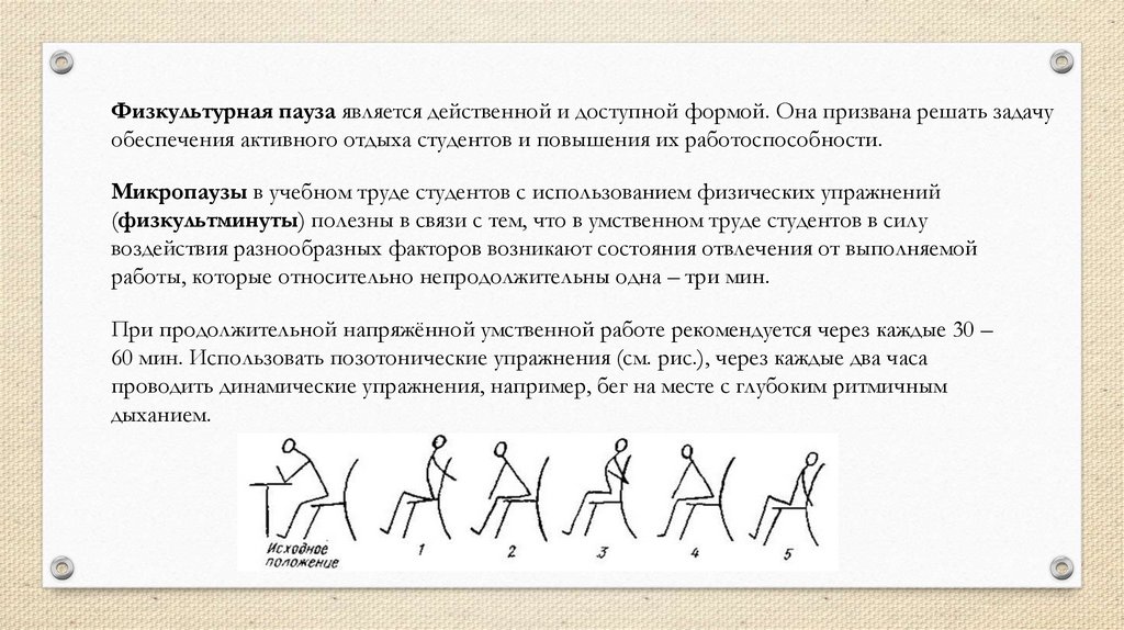 (физкультминуты) полезны в связи с тем, что в умственном труде студентов в силу