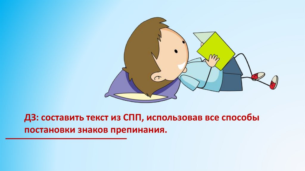 ДЗ: составить текст из СПП, использовав все способыпостановки знаков препинания.
