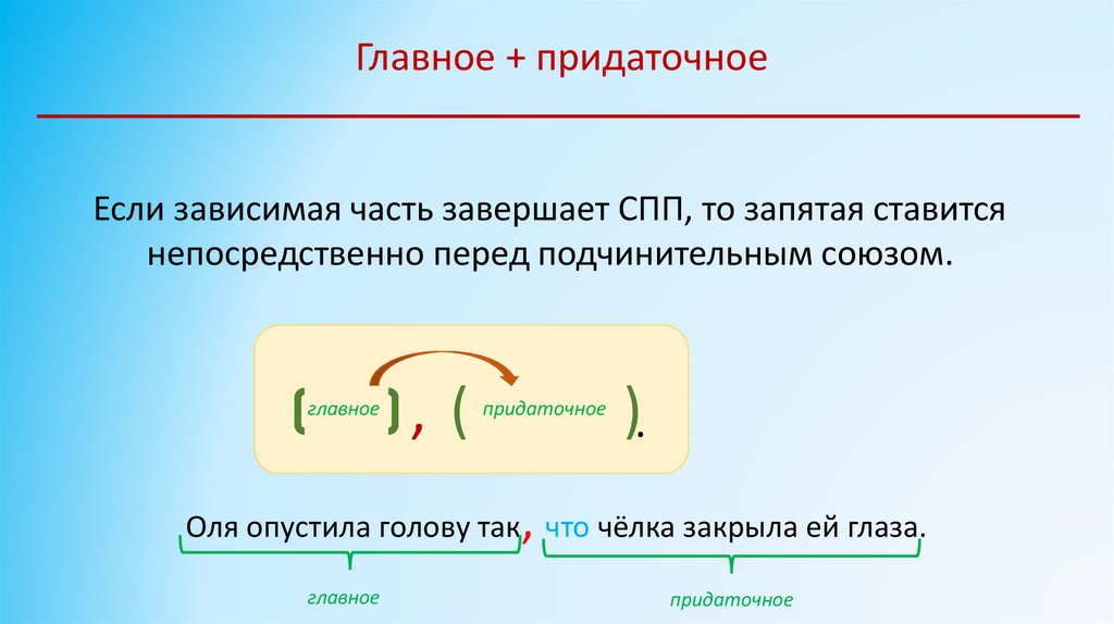 Главное + придаточноеЕсли зависимая часть завершает СПП, то запятая ставится