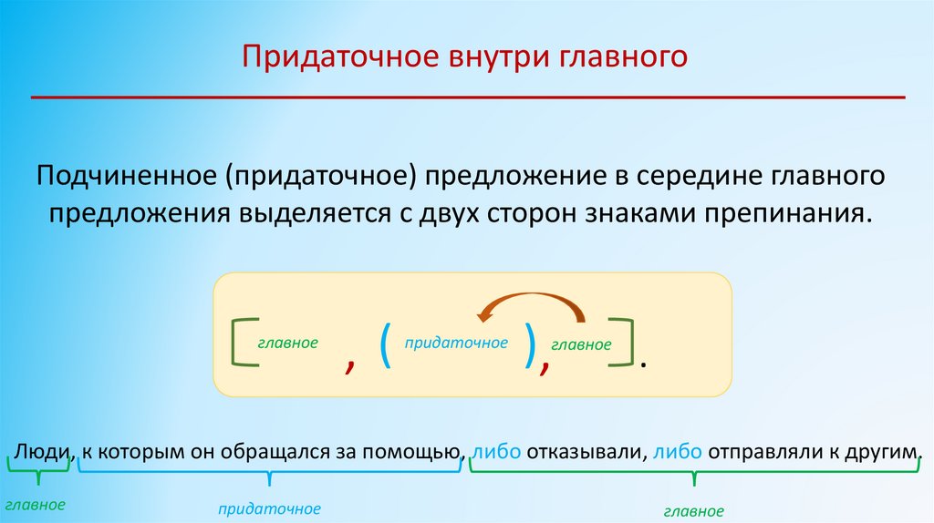 Придаточное внутри главногоПодчиненное (придаточное) предложение в середине главного