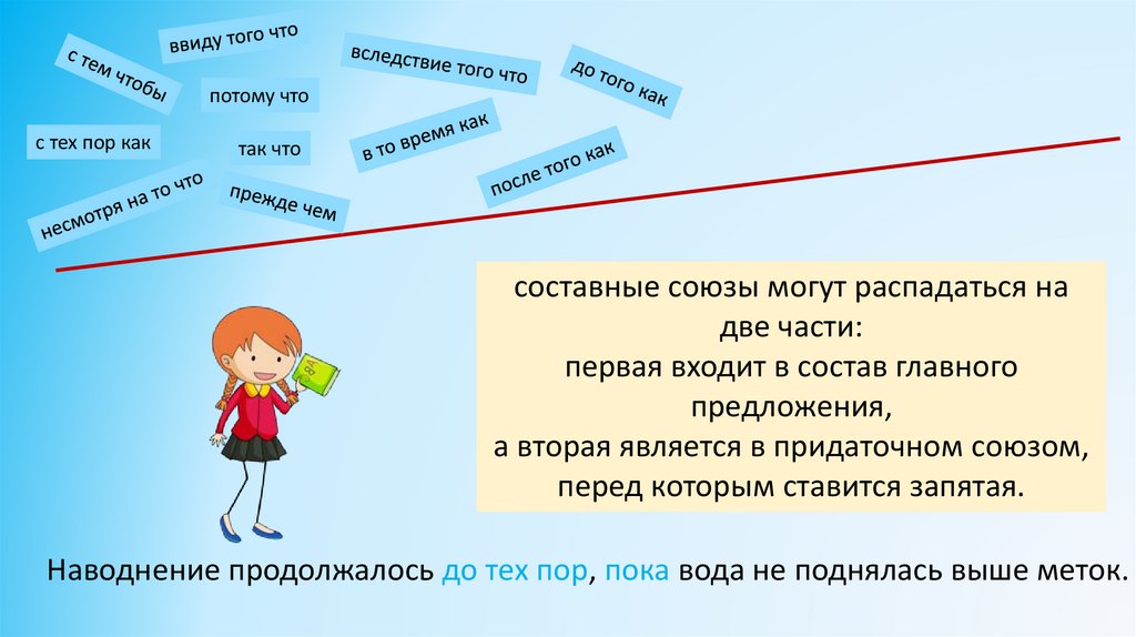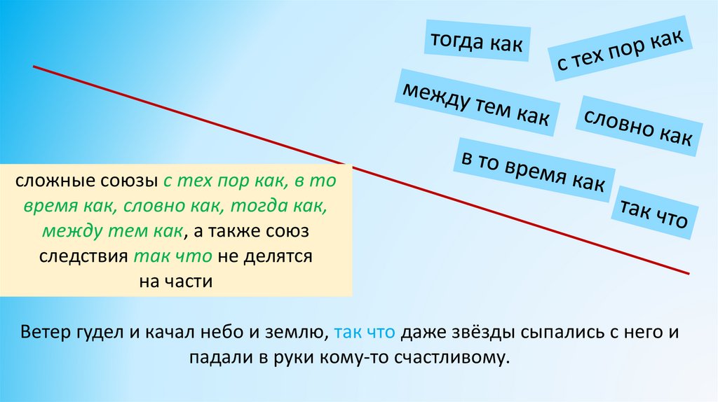 сложные союзы с тех пор как, в товремя как, словно как, тогда как,