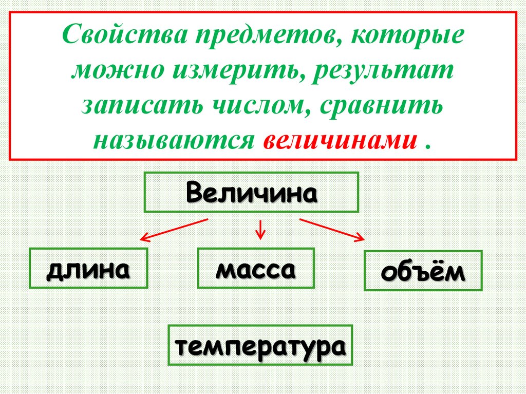 Свойства предметов, которыеможно измерить, результат