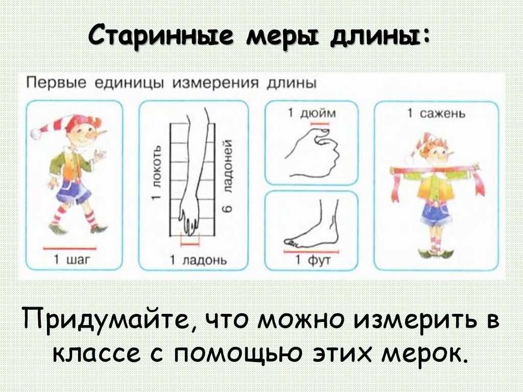 Старинные меры длины:Придумайте, что можно измерить в