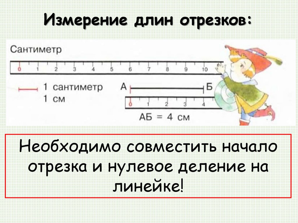 Измерение длин отрезков:Необходимо совместить начало