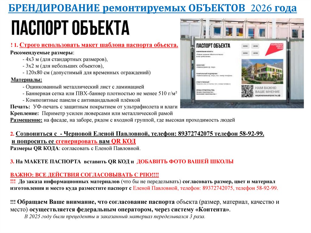 БРЕНДИРОВАНИЕ ремонтируемых ОБЪЕКТОВ 2026 года! 1. Строго использовать макет шаблона паспорта объекта.