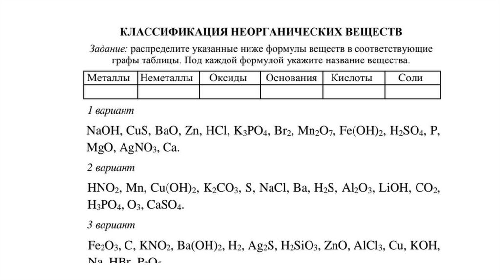 2.Кислоты — состоят из атомов водорода и кислотного остатка. По составу кислотного остатка кислоты классифицируют