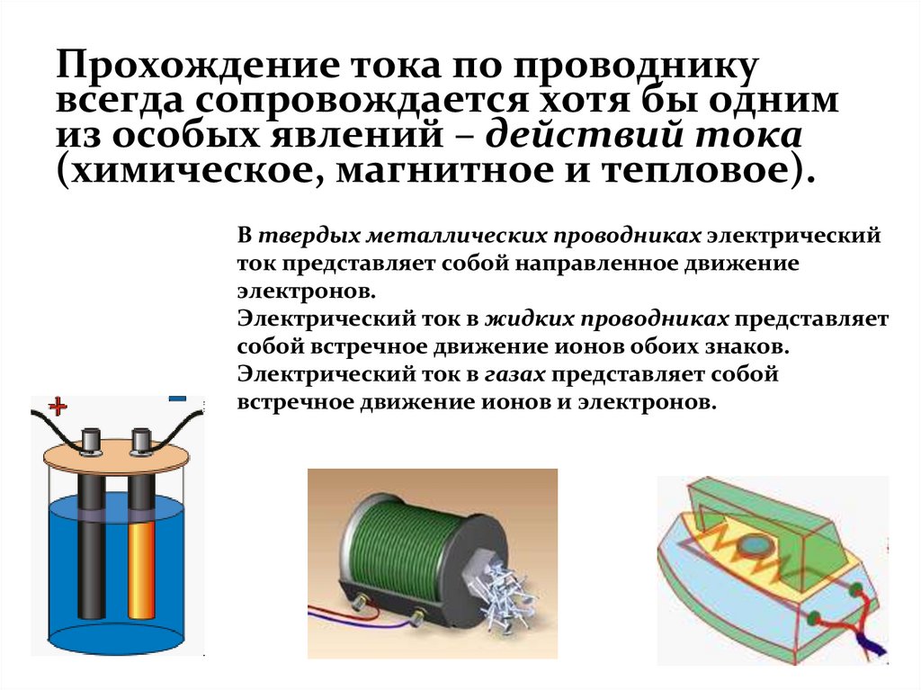 Прохождение тока по проводникувсегда сопровождается хотя бы одним