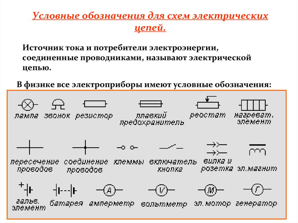 Условные обозначения для схем электрическихцепей.