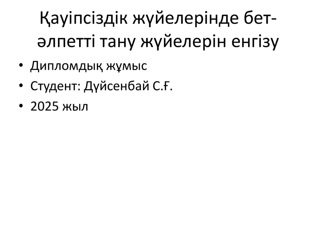 Қауіпсіздік жүйелерінде бетәлпетті тану жүйелерін енгізу• Дипломдық жұмыс
