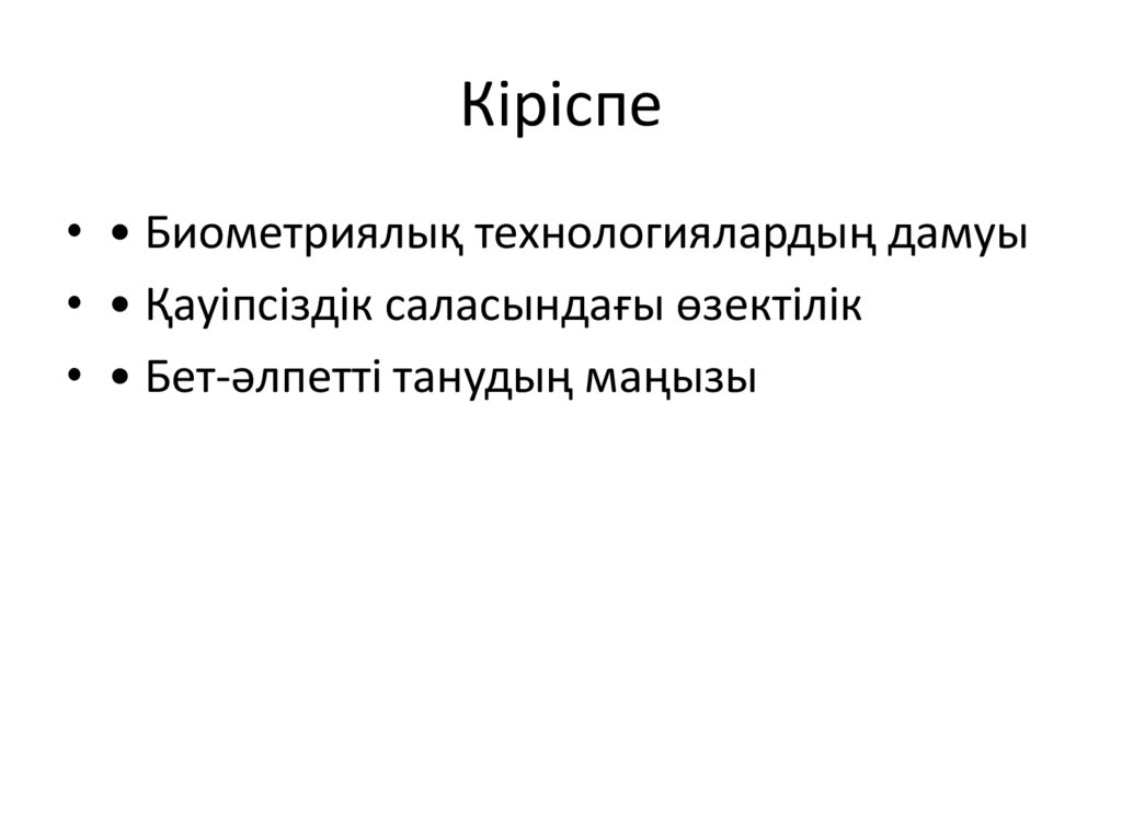 Кіріспе• • Биометриялық технологиялардың дамуы