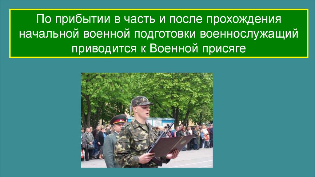 По прибытии в часть и после прохожденияначальной военной подготовки военнослужащий