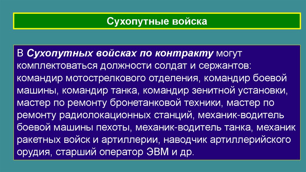 Сухопутные войскаВ Сухопутных войсках по контракту могут