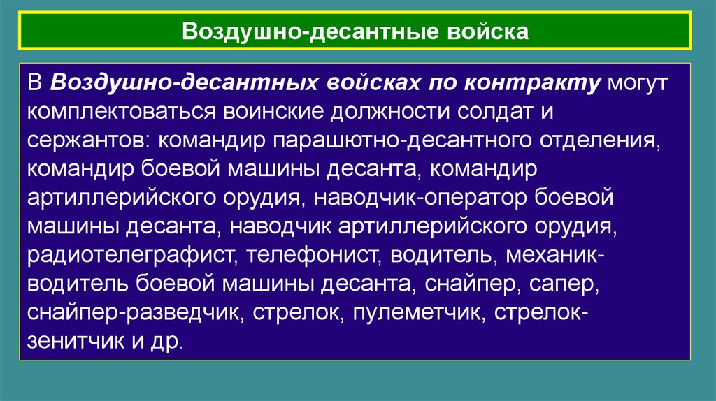 Воздушно-десантные войскаВ Воздушно-десантных войсках по контракту могут