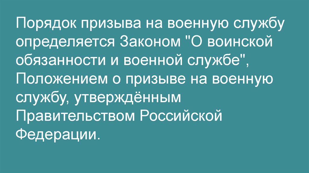 Порядок призыва на военную службуопределяется Законом "О воинской