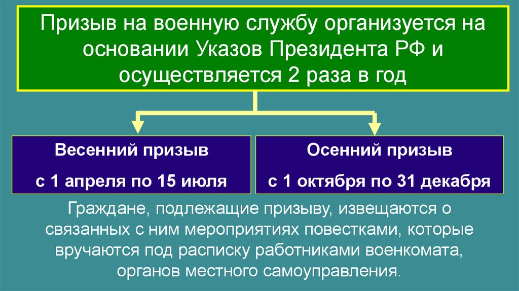 Призыв на военную службу организуется наосновании Указов Президента РФ и