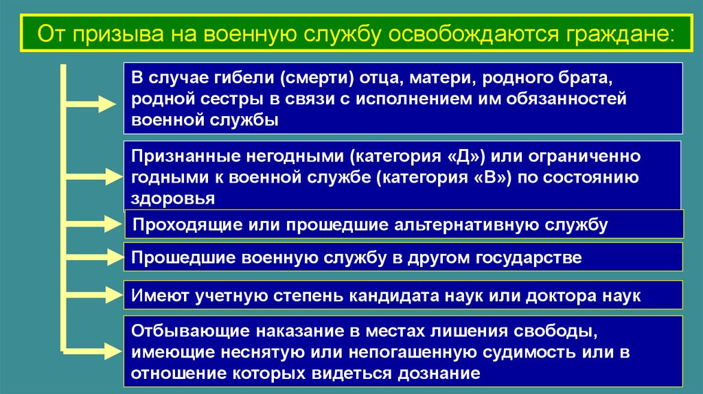 От призыва на военную службу освобождаются граждане:В случае гибели (смерти) отца, матери, родного брата,