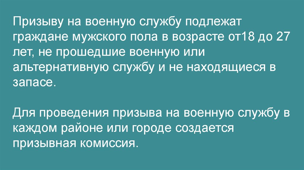 Призыву на военную службу подлежатграждане мужского пола в возрасте от18 до 27