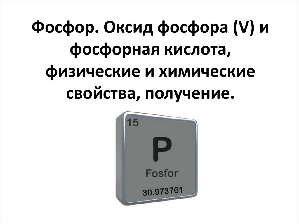 1. Фосфор. Оксид фосфора (V) и фосфорная кислота, физические и химические свойства, получение.
