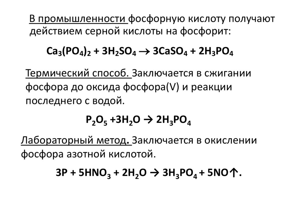 В промышленности фосфорную кислоту получаютдействием серной кислоты на фосфорит: