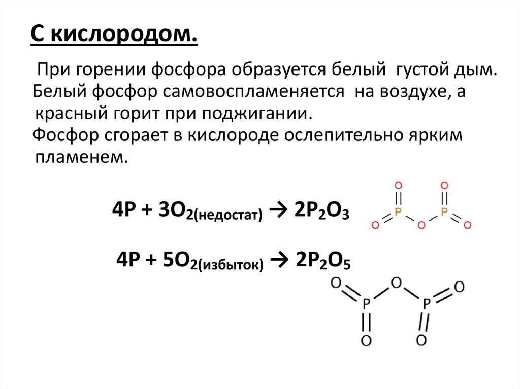 4P + 3O2(недостат) → 2P2O3
