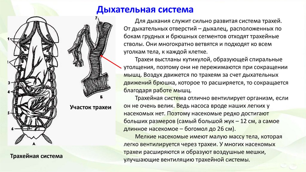 Дыхание осуществляется при помощи трахей. Трахеи –
