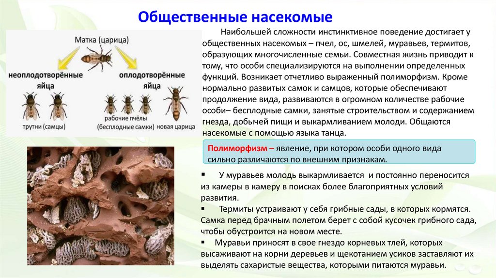 Общественные насекомыеНаибольшей сложности инстинктивное поведение достигает у