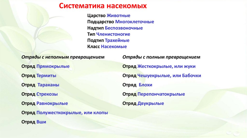 Систематика насекомыхЦарство Животные