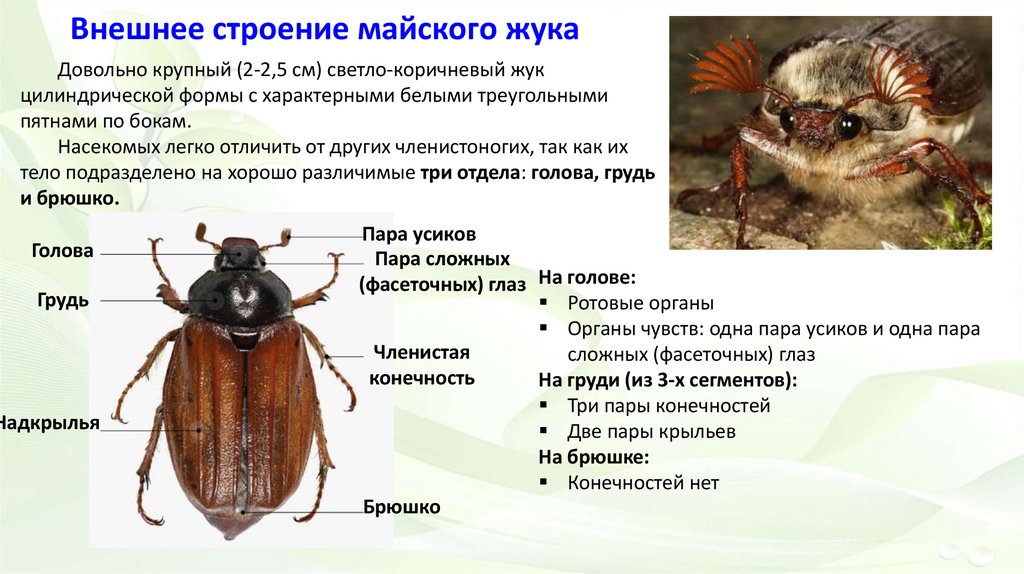 Внешнее строение майского жукаДовольно крупный (2-2,5 см) светло-коричневый жук