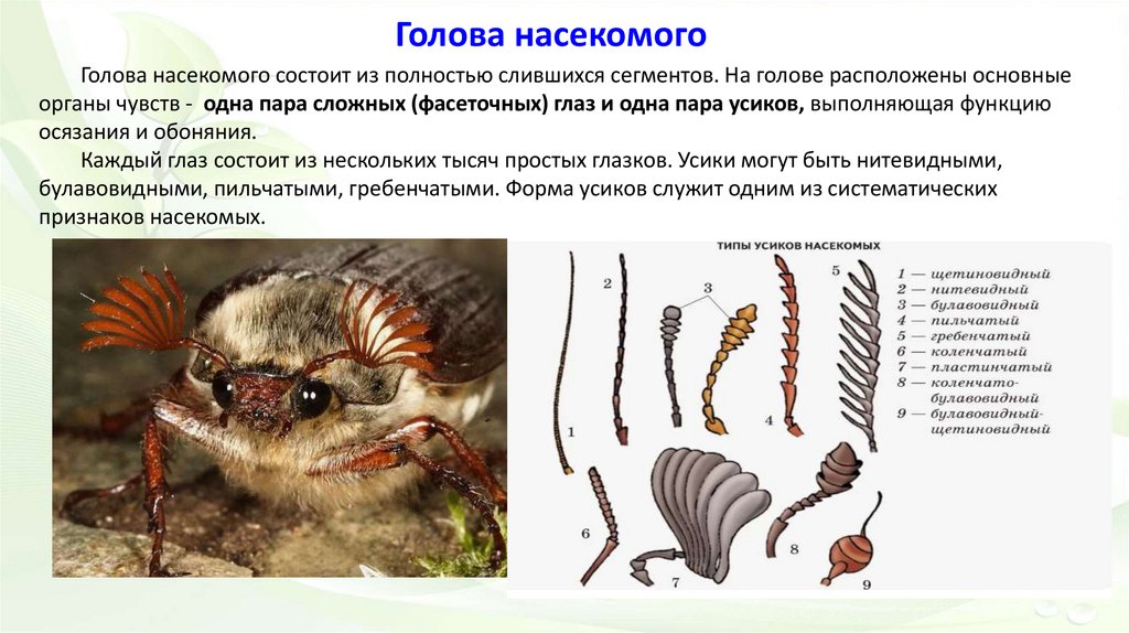 Голова насекомогоГолова насекомого состоит из полностью слившихся сегментов. На голове расположены основные