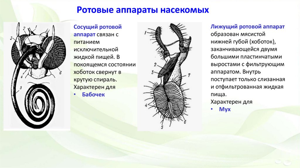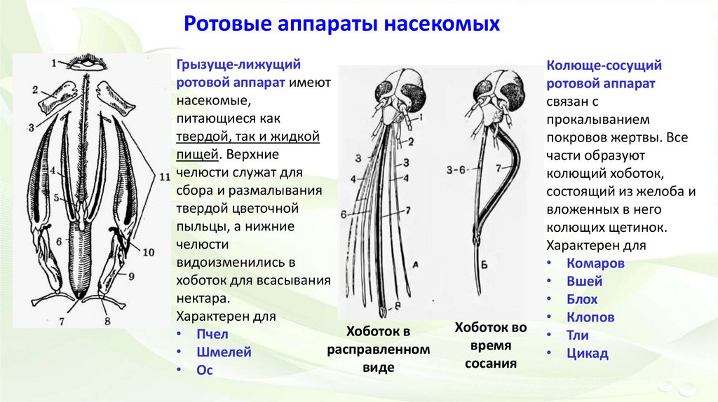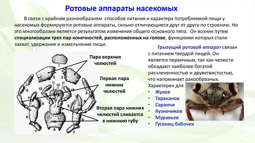 насекомых формируются ротовые аппараты, сильно отличающиеся друг от друга по строению. Но