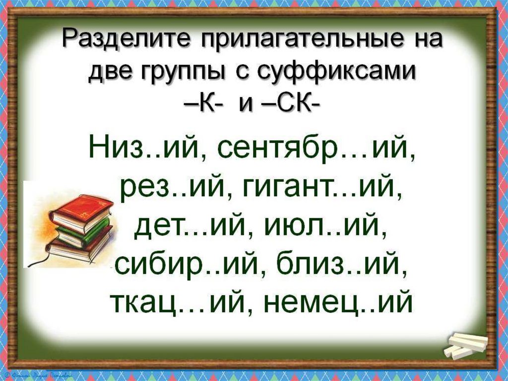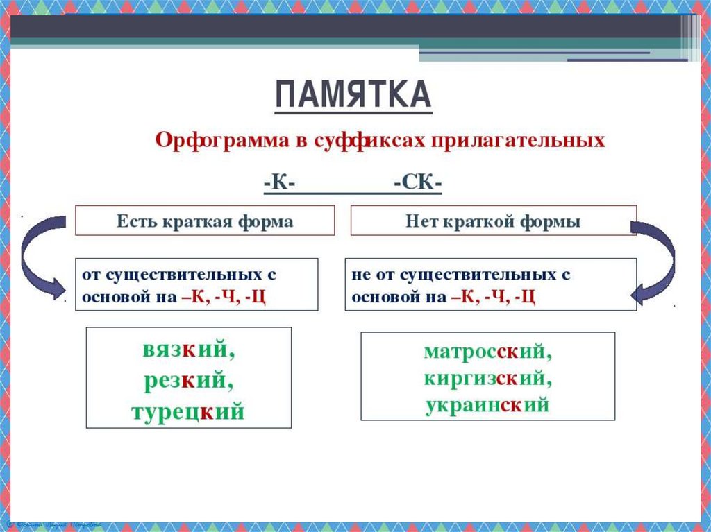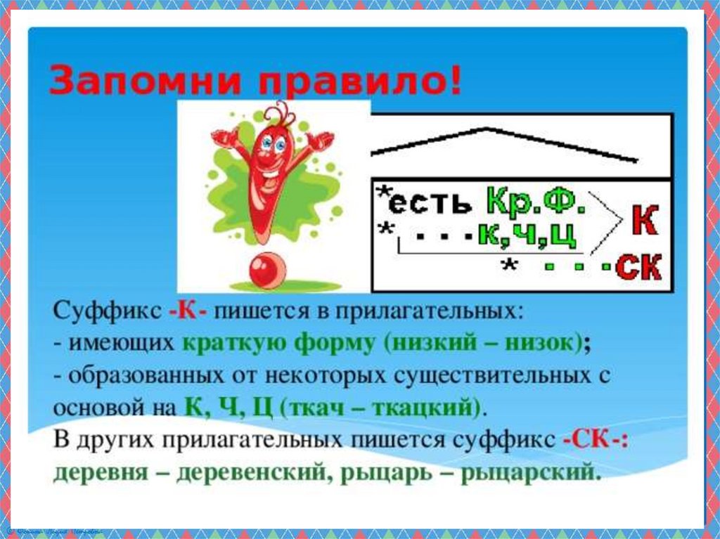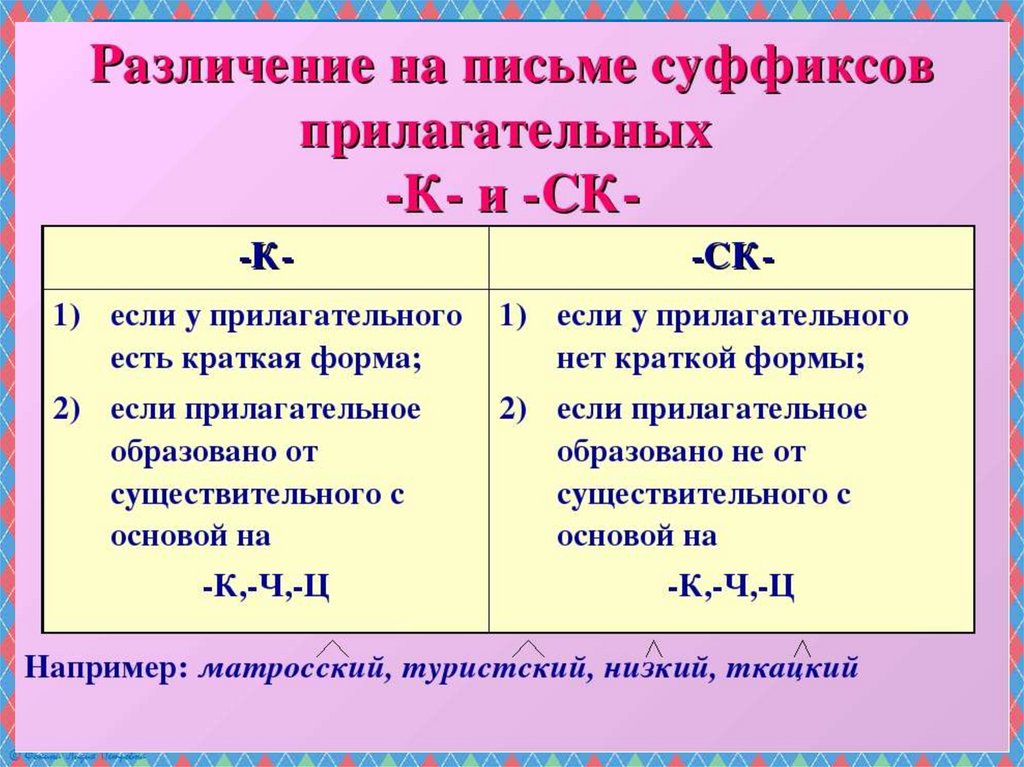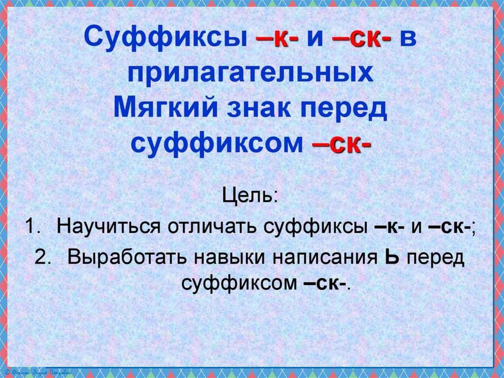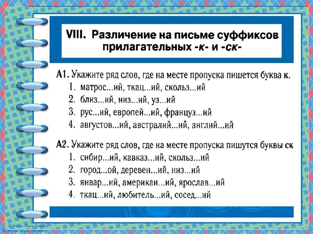 Презентация по русскому языку на тему _Суффиксы к, ск в прилагательных_ (6 класс)