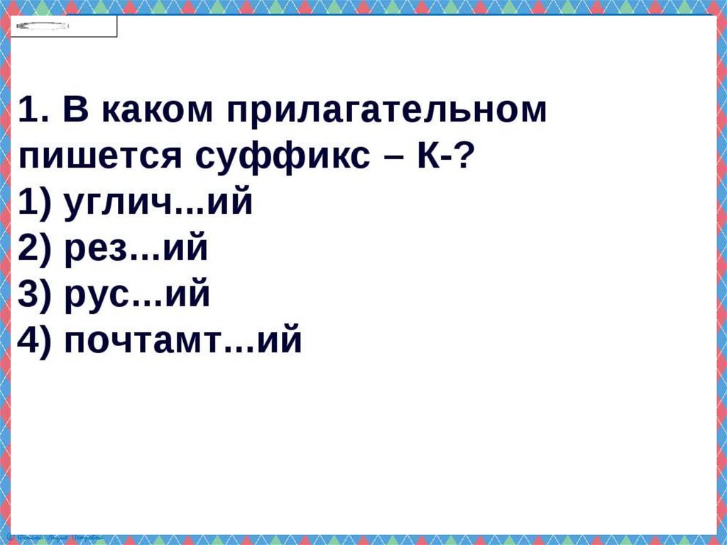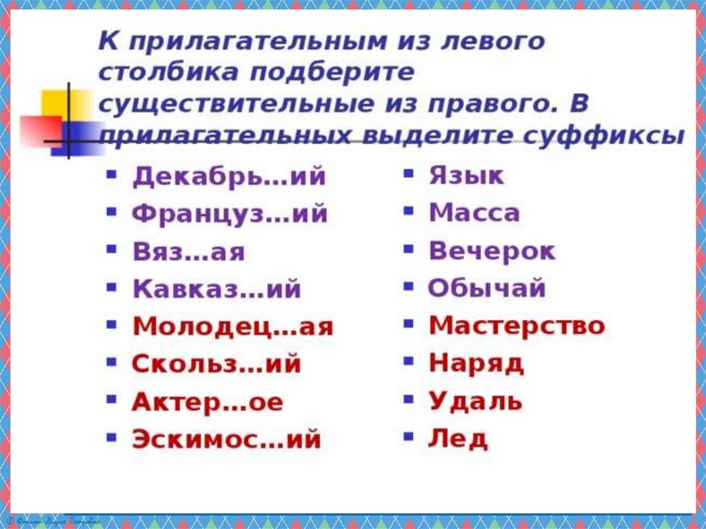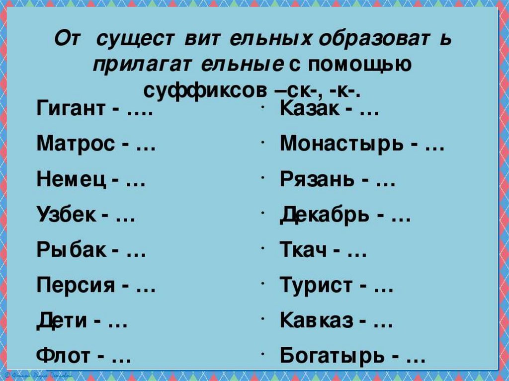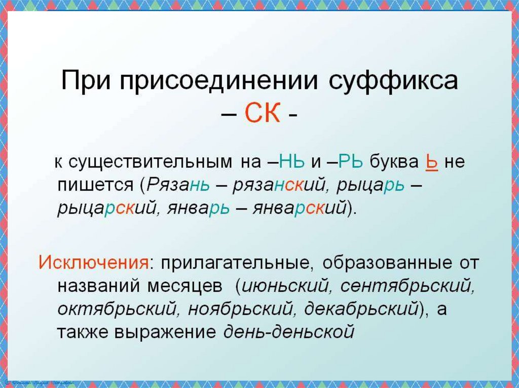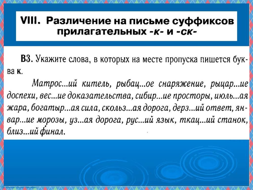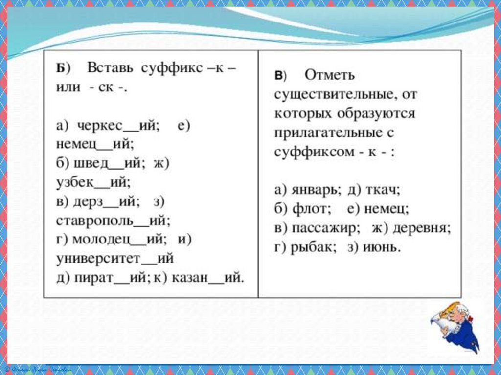 Презентация по русскому языку на тему _Суффиксы к, ск в прилагательных_ (6 класс)