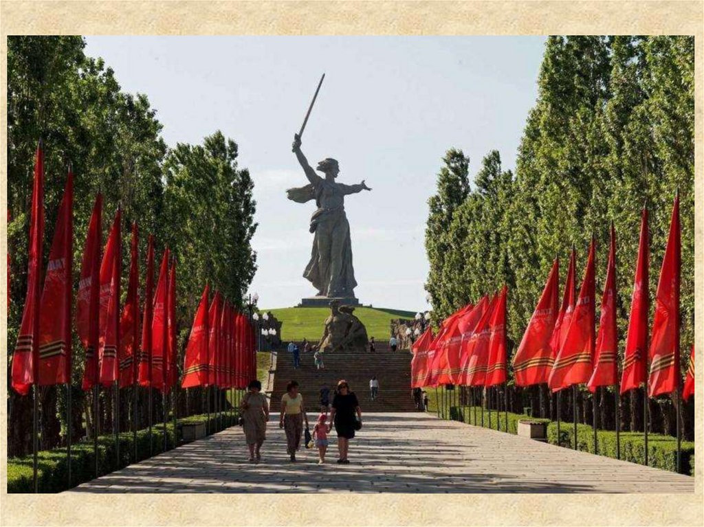 15. В ознаменование победы над немецко-фашистскими войсками на Мамаевом Кургане сооружён величественный памятник вечной славы