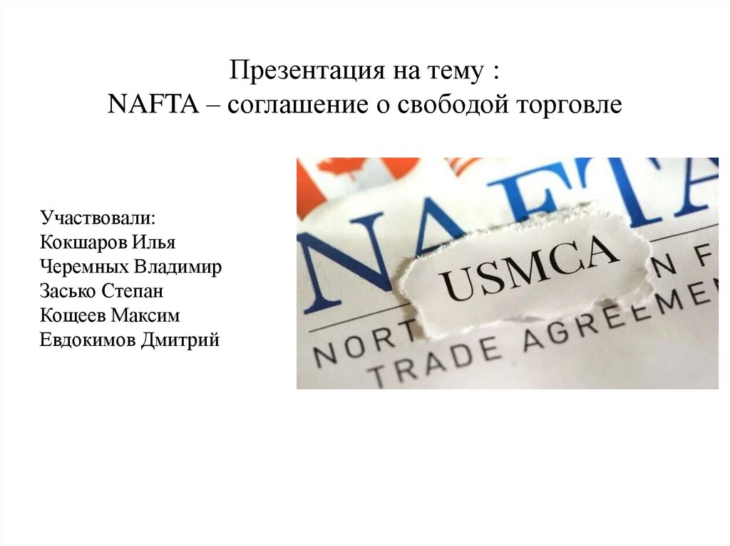 Презентация на тему :NAFTA – соглашение о свободой торговле