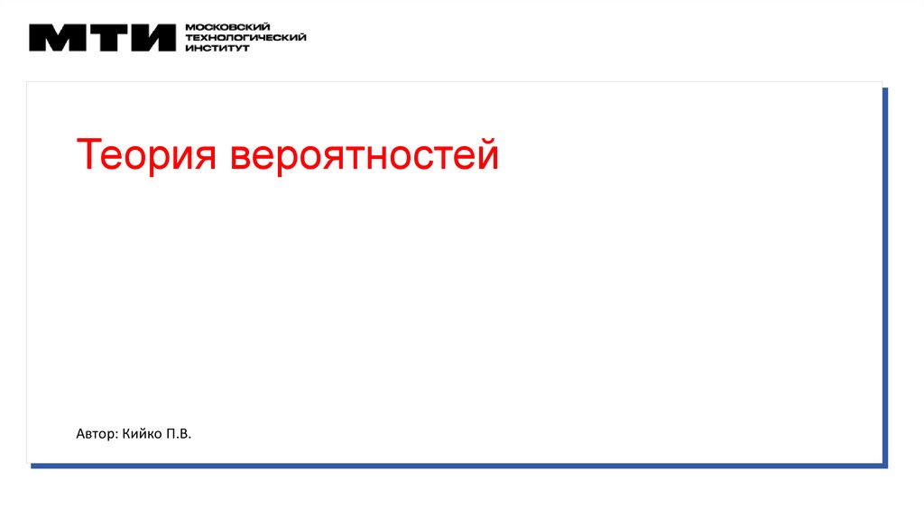 Teoriya veroyatnostey Lektsiya 1 MTI